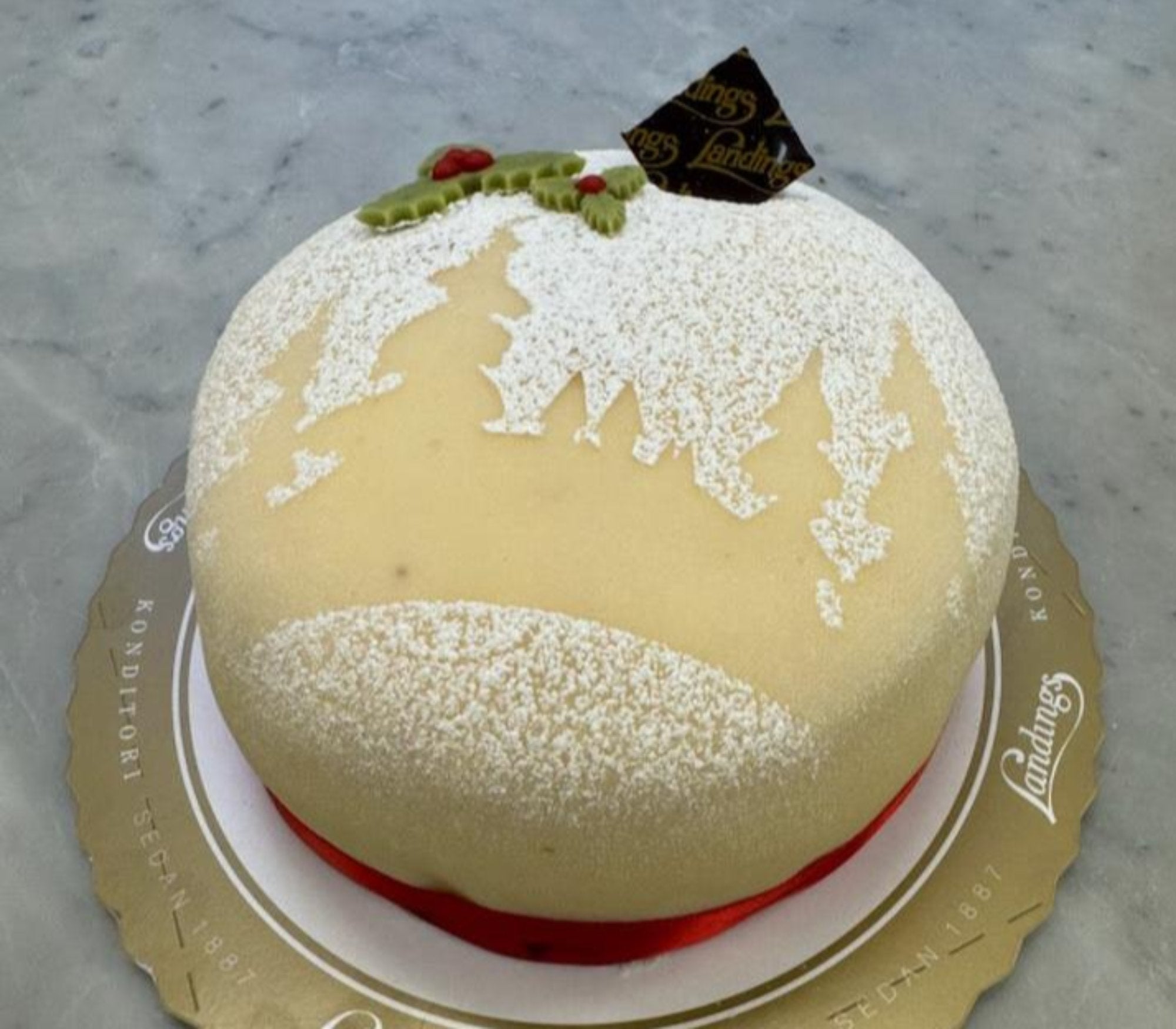 Består av sockerkaksbotten, len vaniljkräm och fluffigt vispad grädde som sedan kläs in i ett smakrikt marsipantäcke.