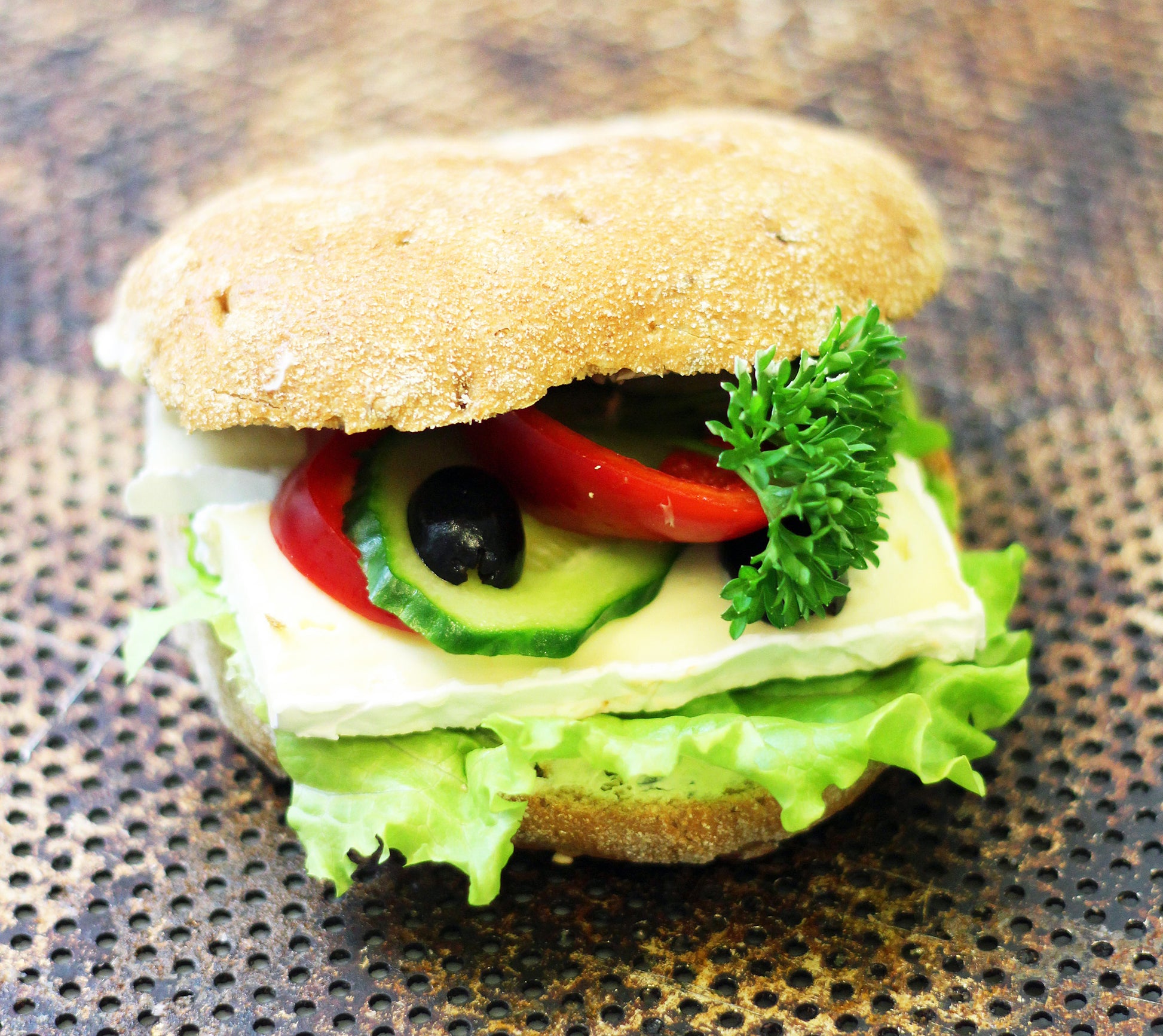 GI-bröd fylld med vår egna färskoströra på soltorkad tomat och oliver, brieost och grönsaker. Vegetarisk.